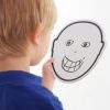 Inbegriffen sind auch 3 leere Gesichter für die eigene Gestaltung mit einem Whiteboardstift. Außerdem gibt es Spiegel in der Form eines Gesichtes, um das eigene Gesicht betrachten zu können.