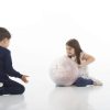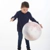 Ein großer aufblasbarer Ball aus Plastik mit einer strukturierten Oberfläche. Der Ball ist mit kleinen farbigen platten Perlen gefüllt, die tanzen und rasseln, wenn man den Ball bewegt. Kinder können den Ball hin und her rollen und hiermit ihren Fokus und ihre Konzentration spielerisch verbessern.