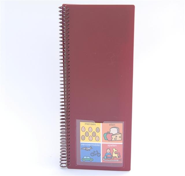 Ein großes robustes Kommunikations-Buch aus Hartplastik mit einer stabilen Ringung, wegen der das Buch auch geöffnet gut liegen bleibt.
