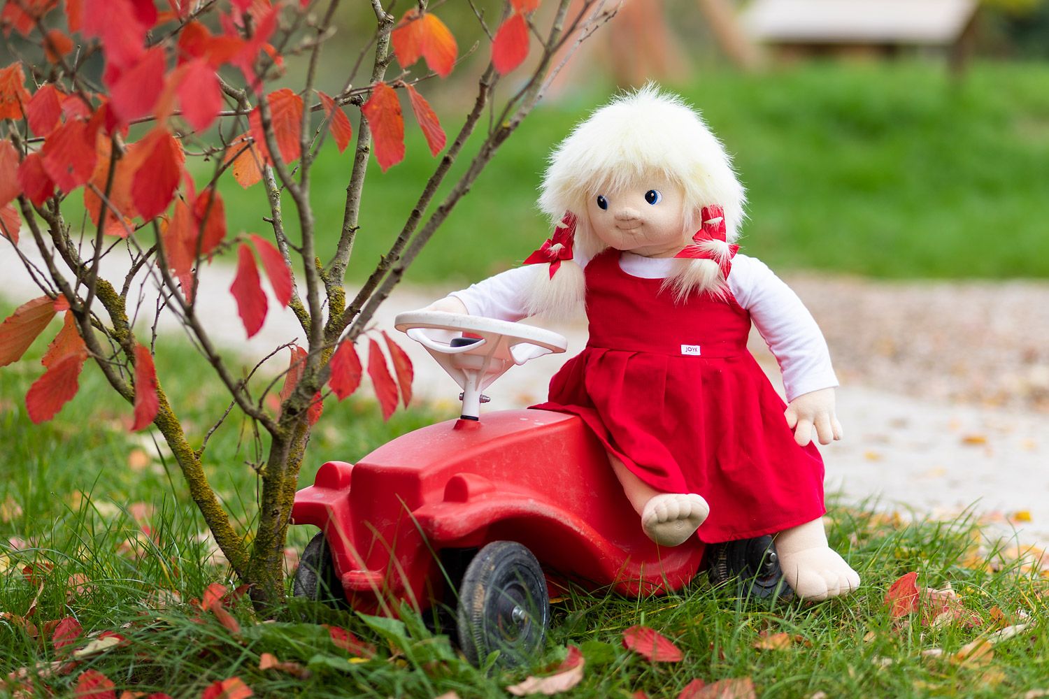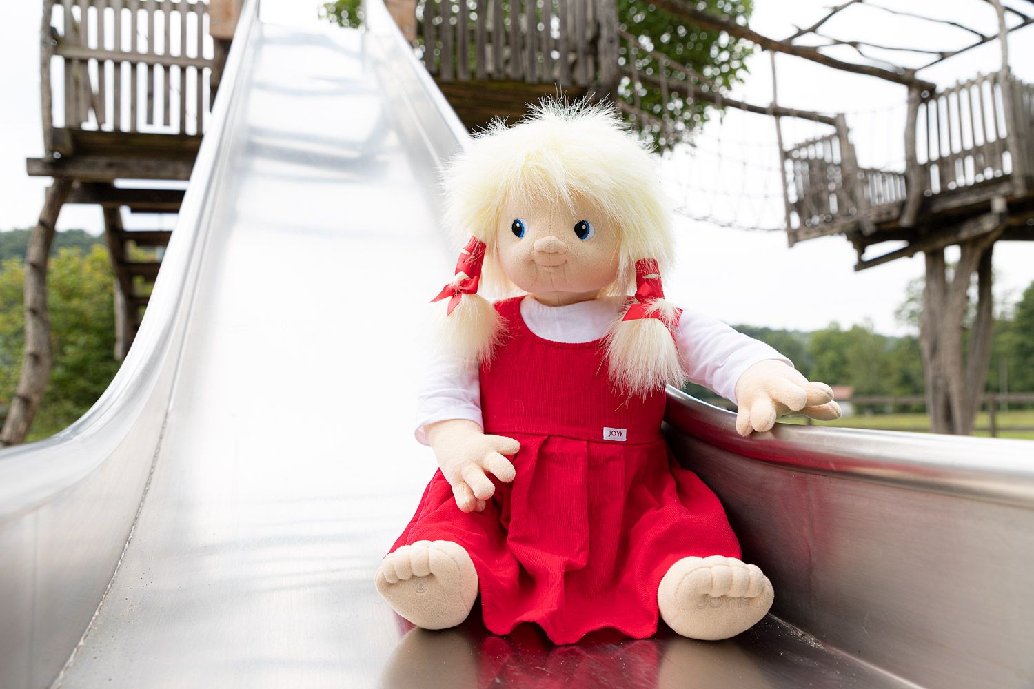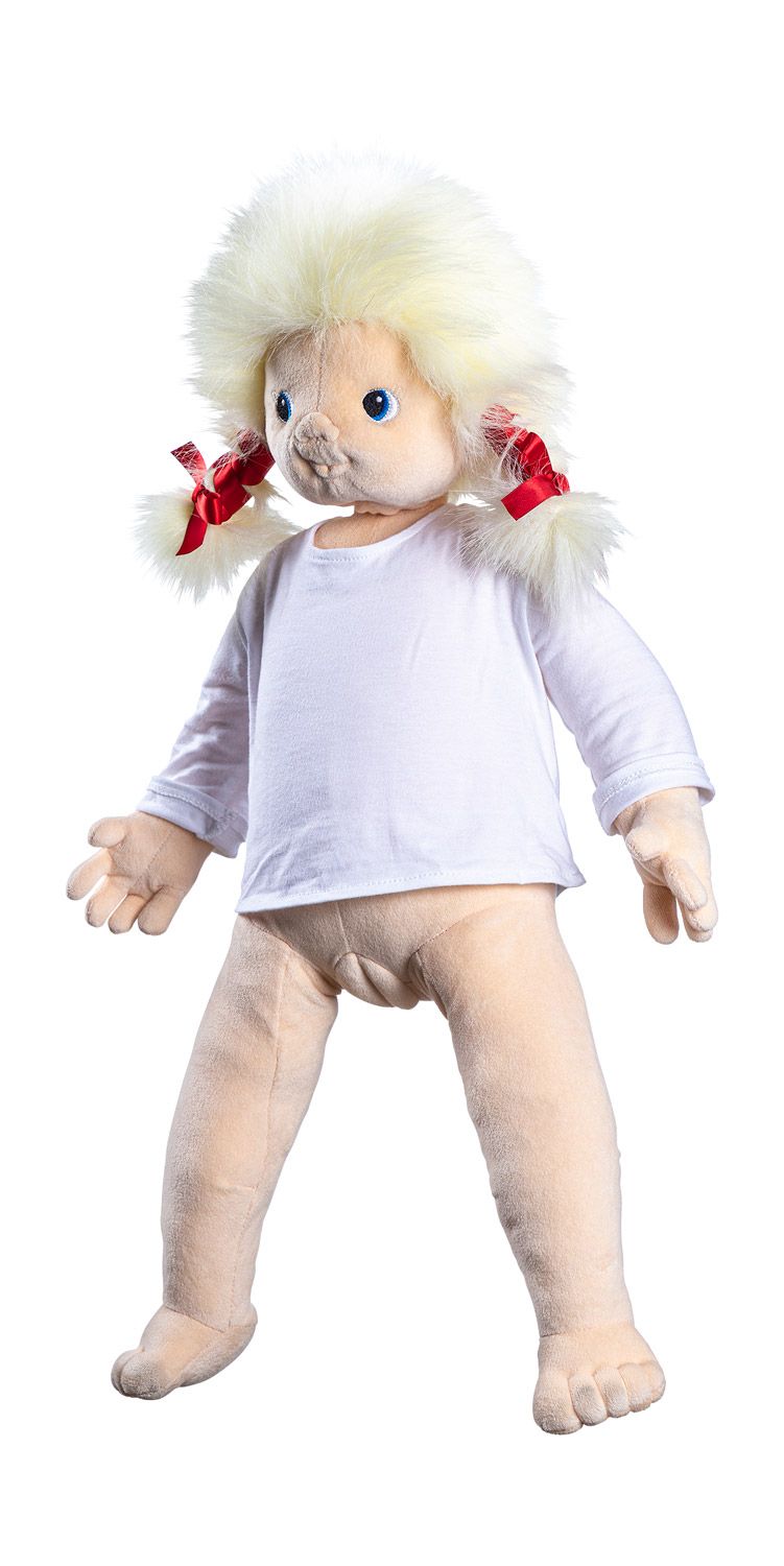 Joyk Puppen ziehen sofort die Aufmerksamkeit auf sich. Mit ihrem speziellen Gesichtsausdruck scheint es, als ob sie einen wirklich anschauen, vor allem wenn man sie auf dem Schoß hat oder im Arm hält. Durch ihr Gewicht fühlen sie sich ebenfalls wie ein richtiges Kind an. Die Joyk Puppe bleibt wegen ihrer erschwerten Unterseite sogar sitzen.