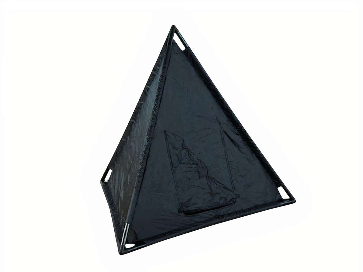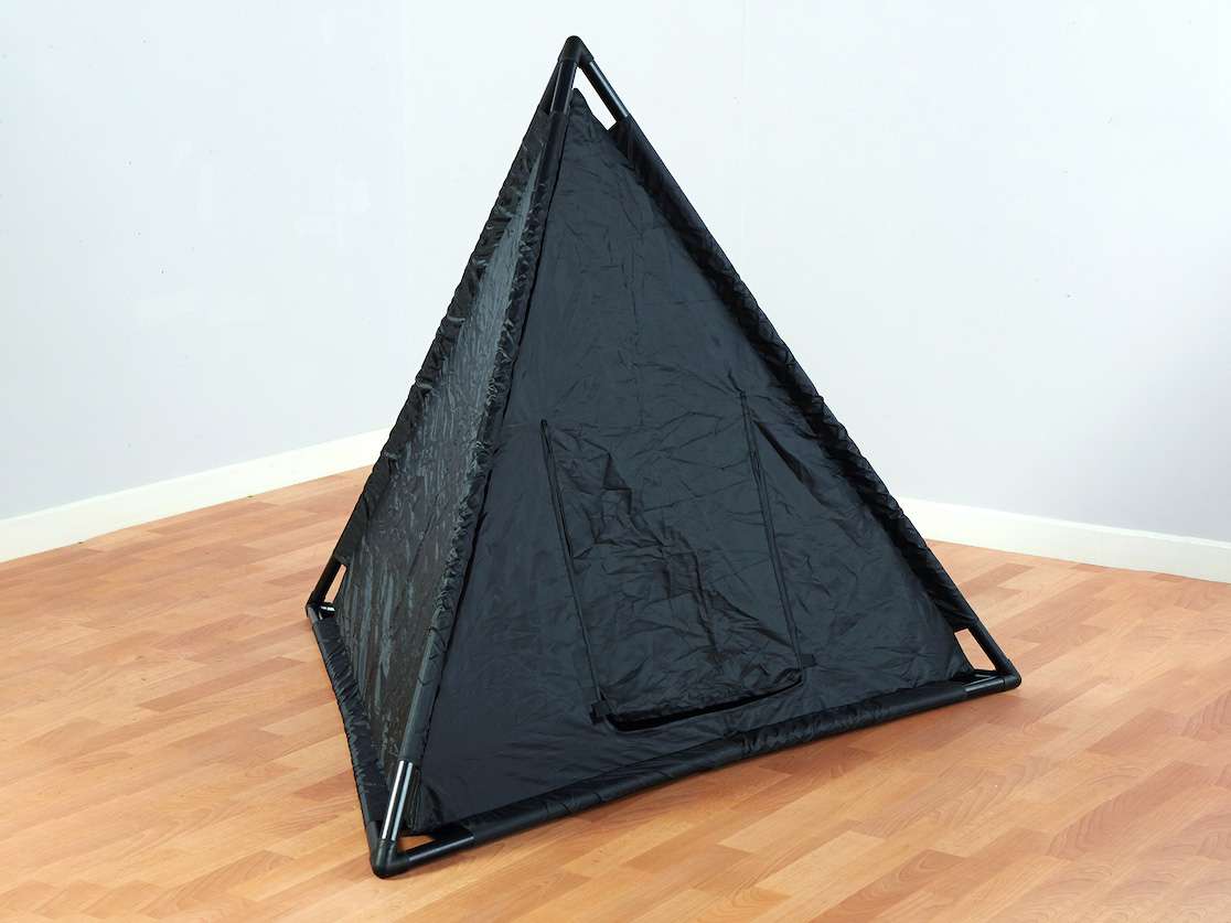 Die doppelte Nylonhaut des Zeltes lässt kein Licht durch. Der Eingang kann verdeckt werden, so dass es im Inneren dunkel ist. Die Zelt-Pyramide bietet eine gute Möglichkeit für die sensorische Erkundung, dazu können alle Materialien verwendet werden die leuchten oder Licht abgeben. Auch als Rückziehort für Kinder kann das Zelt eingesetzt werden.