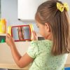 Handliche, unzerbrechliche Spiegel mit einem „normalen“ Spiegel auf der einen Seite und einem verzerrenden „Lachspiegel“ auf der anderen Seite. Die Handgriffe aus Gummi haben fröhliche Farben.